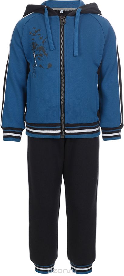 Состав: 60% хлопок, 40% п/э. Толстовка: на молнии, капюшон со шнурком-утяжкой, карманы, манжеты и низ из рибаны. Брюки: пояс из рибаны, внутренняя утяж"