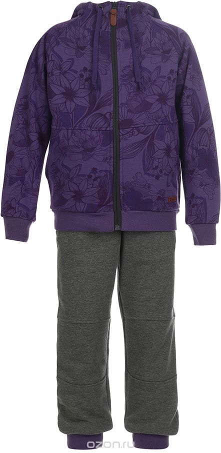 Состав: 60% хлопок, 40% п/э. Толстовка: на молнии, капюшон со шнурком-утяжкой, карманы, манжеты и низ из рибаны. Брюки: пояс из рибаны, внутренняя у"